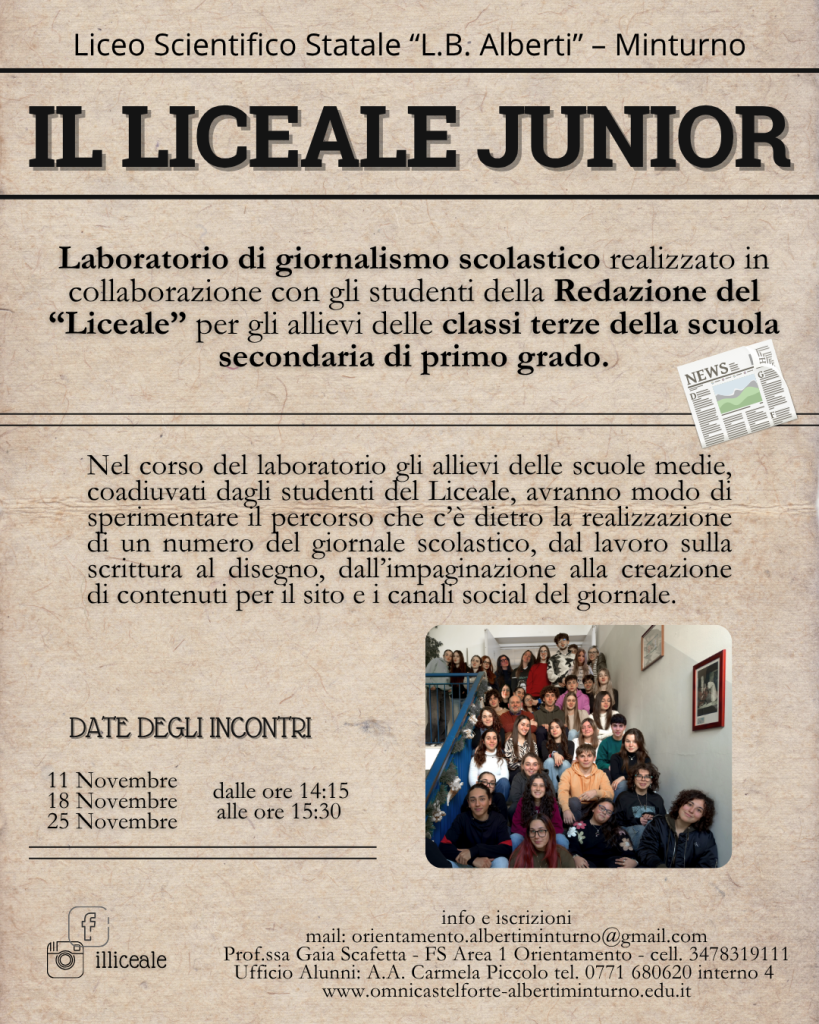 Sei laboratori attivati per i ragazzi della scuola secondaria di primo grado e quattro giornate dedicata all'iniziativa "Liceale per un giorno".